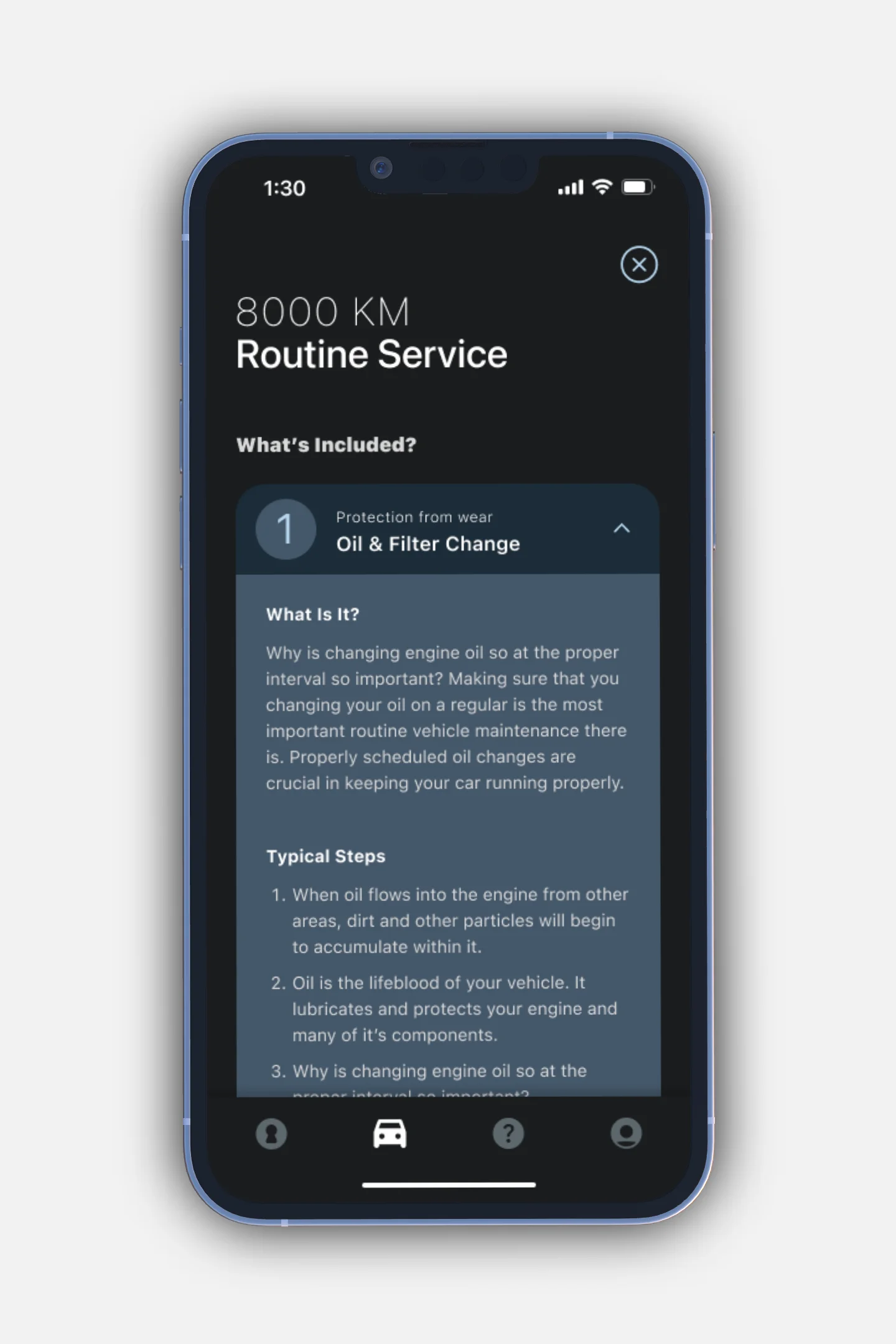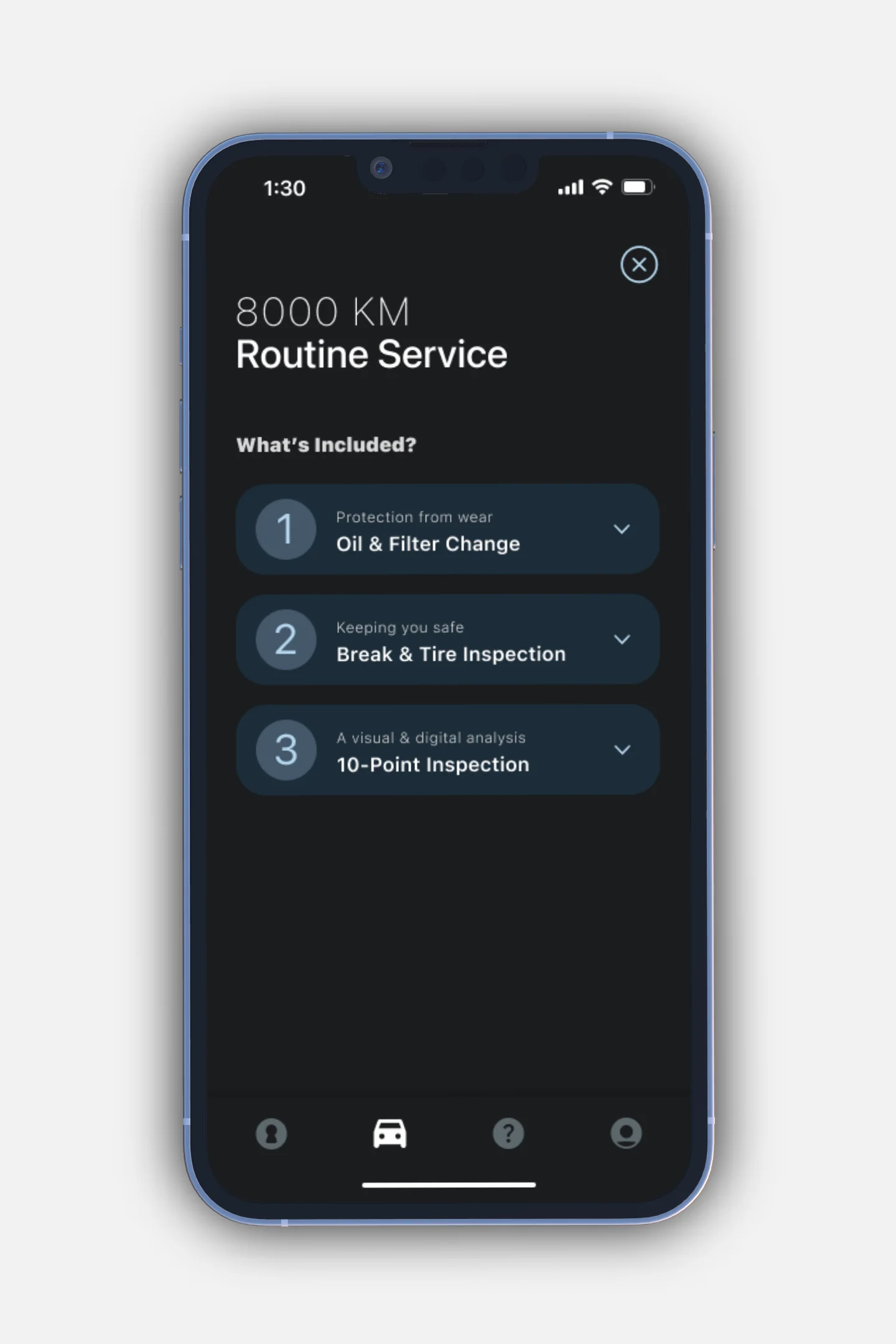 In a dedicated service tab, owners can see when and why they need a maintenance service, what each service contains, and even the estimated time and monetary costs. By including this information, we are bringing transparency and a higher value perception to the owner.