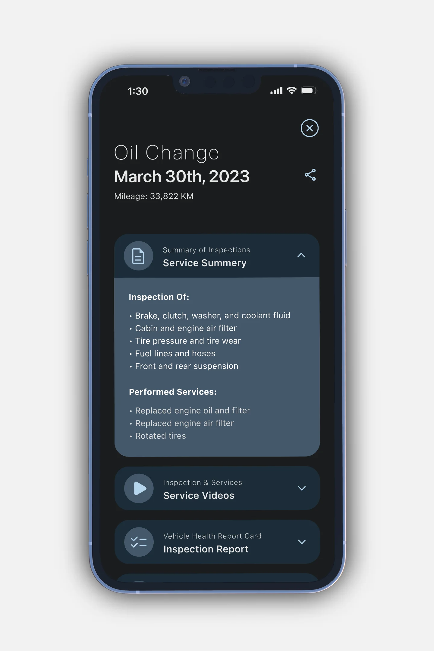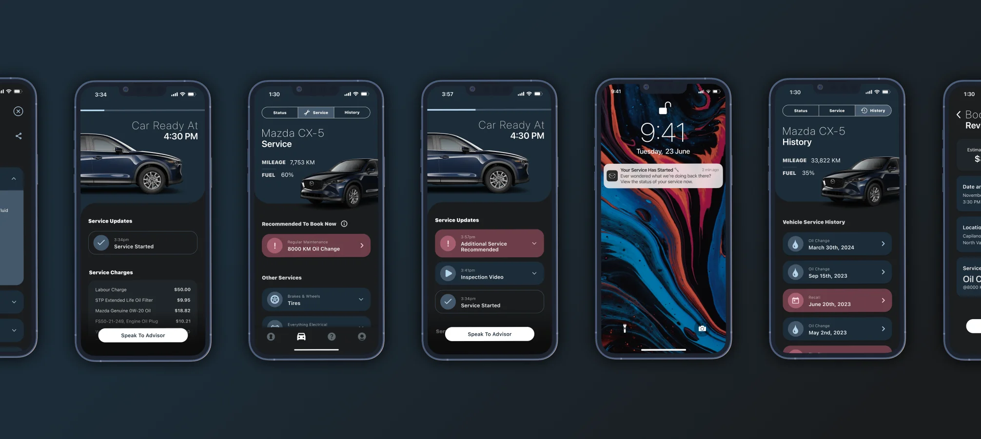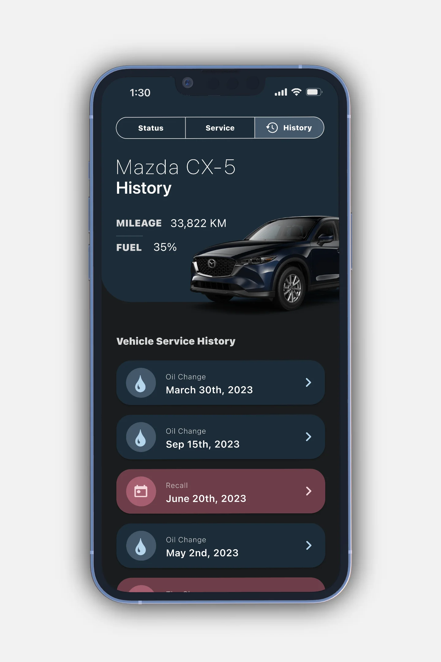 When a Mazda owner is ready to sell their vehicle or wants to review past services, they can access their service history within the application and view all the information associated with that service, such as: the service summery, service videos, inspection reports and the receipt.