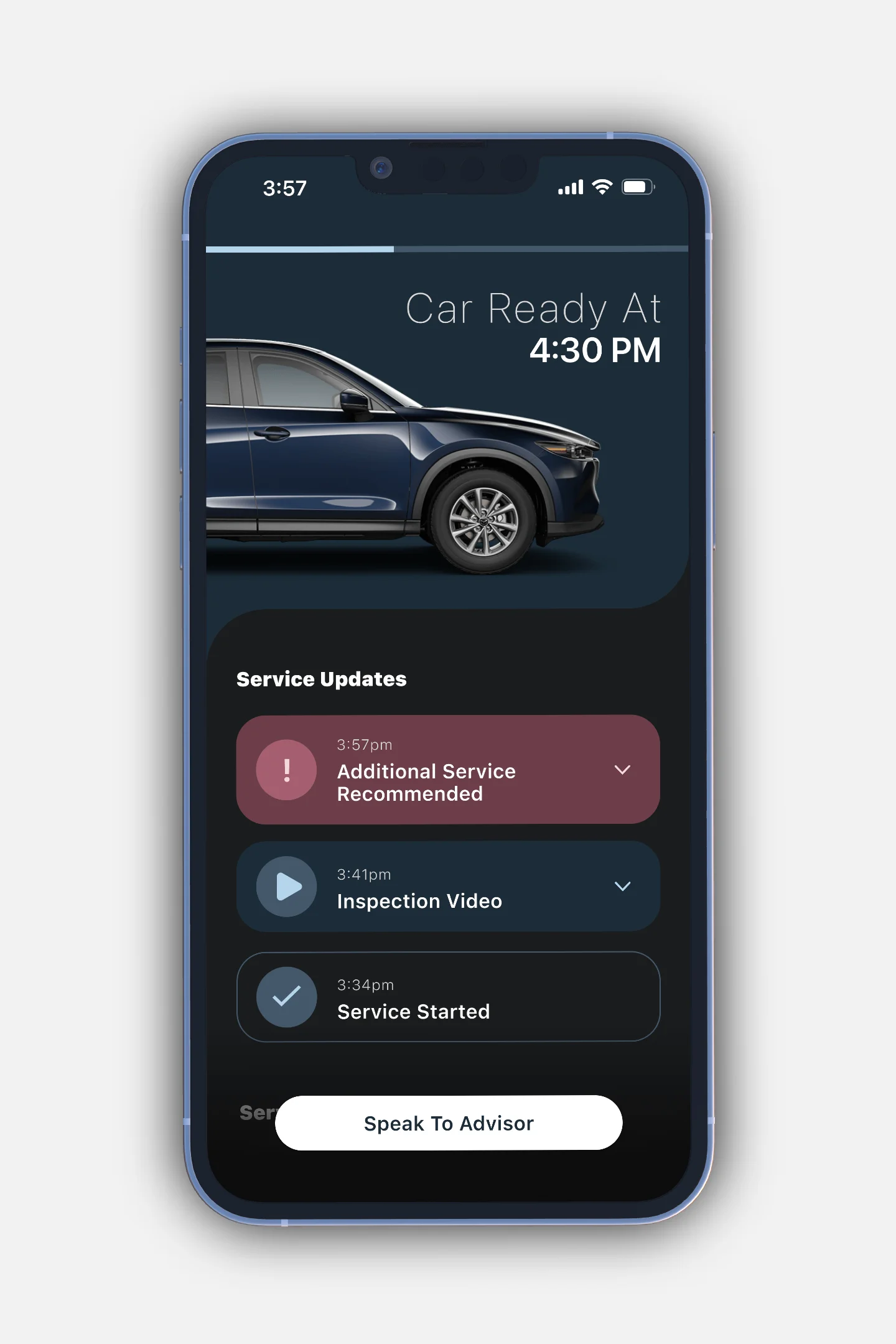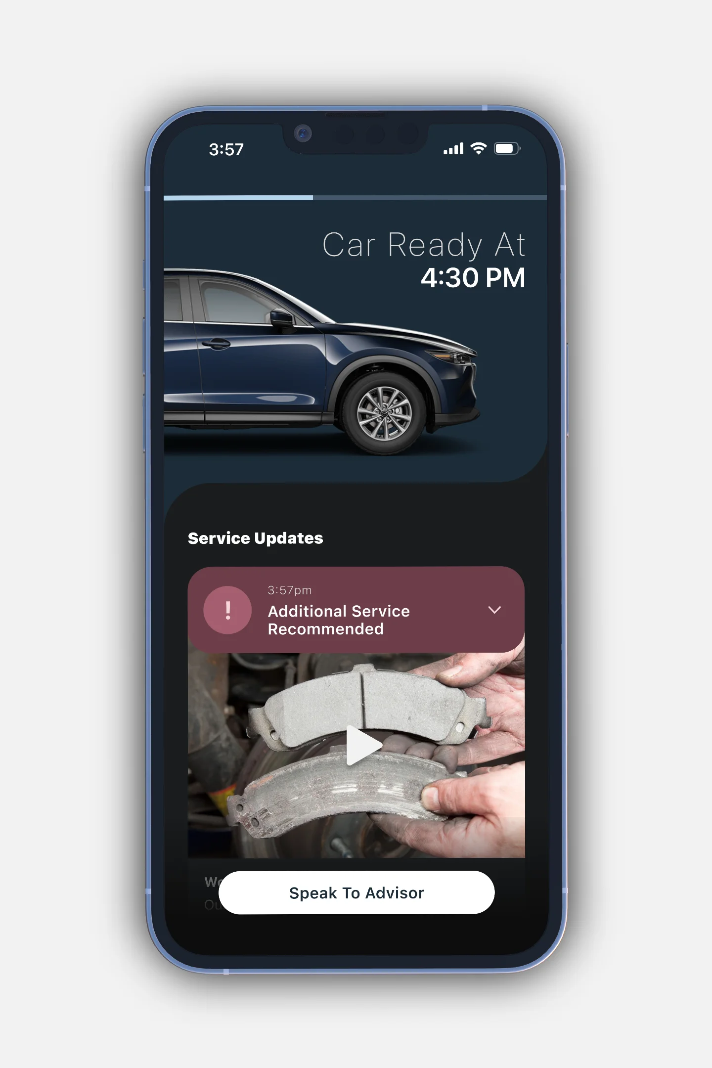 During a service, sometimes there are additional work that needs to be done on the vehicle. To provide transparency and comfort for the owner, we added a video notification feature that is accessible within the during service screen.