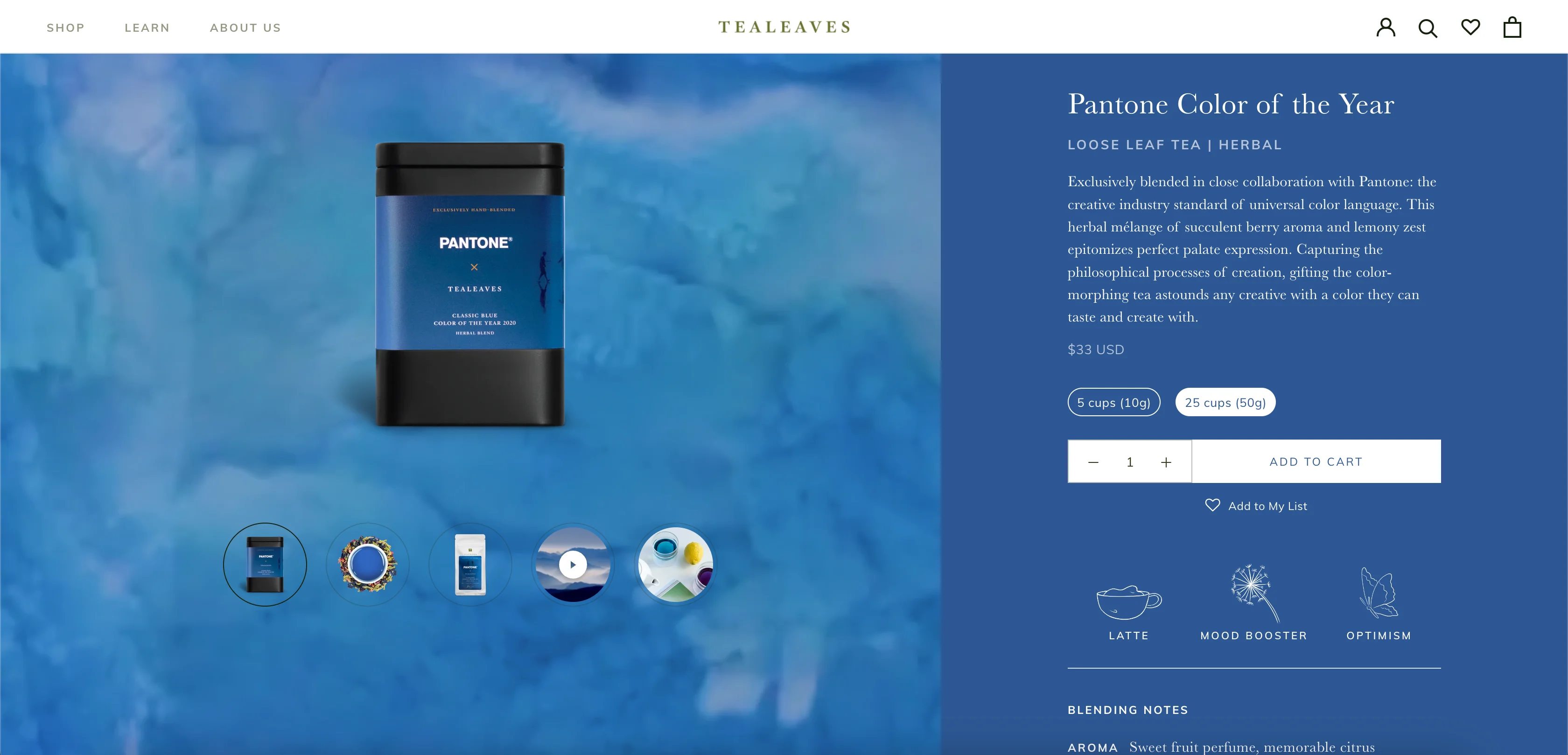 TEALEAVES is a Canadian based tea company that largely distributes to high end hotels all over the world, in addition to a prominent e-commerce website that ships their blends internationally. While working at my internship at TEALEAVES, I was tasked with redesigning the product page layout that affected every single one of the 175 products.